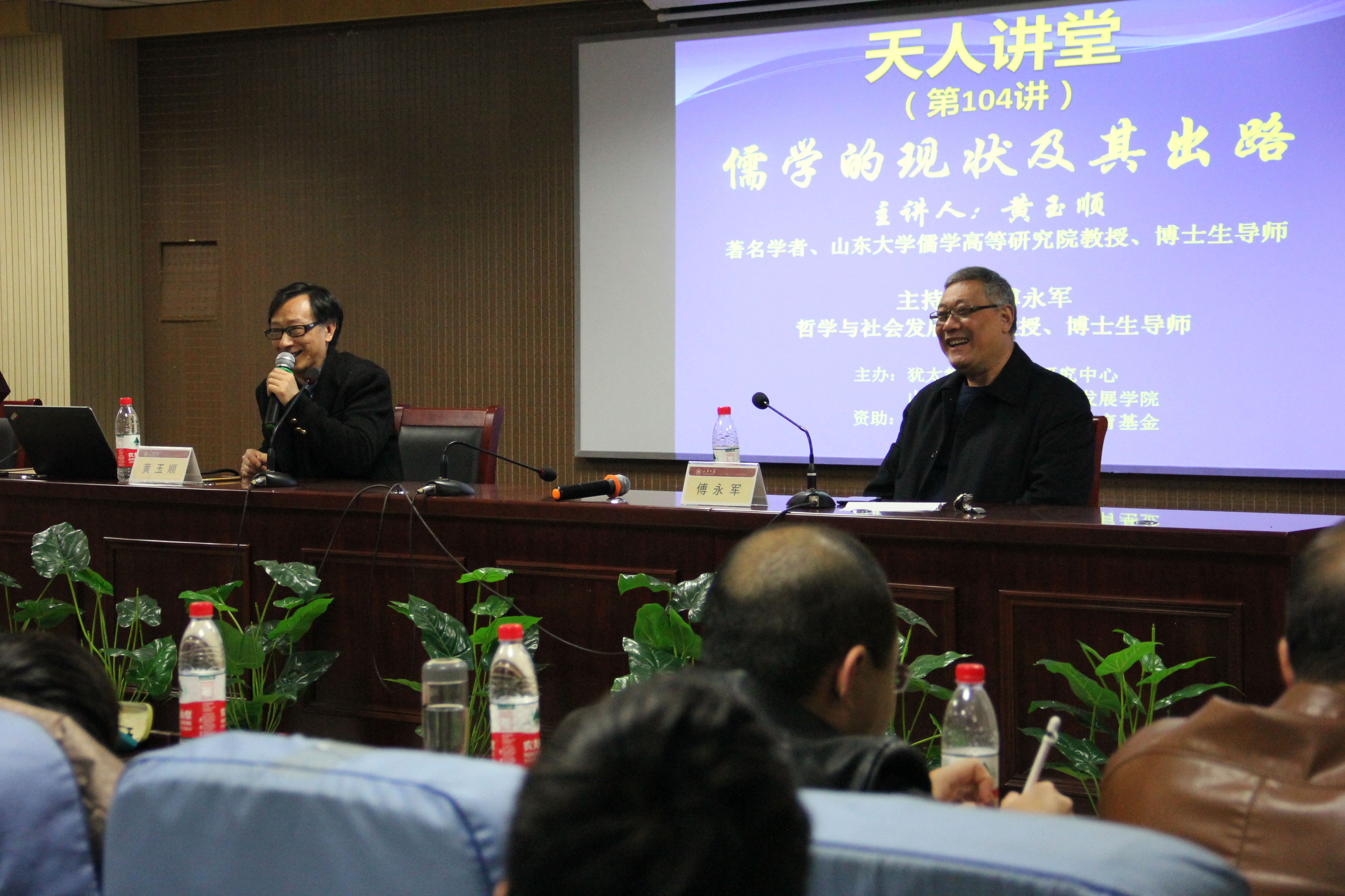 11月20日,著名学者、bwin必赢儒学高等研究院黄玉顺教授做客“天人讲堂”第104讲,演讲题目为“儒家的现状及其出路”。