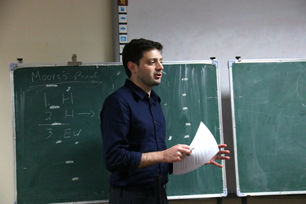 讲座伊始,Dr.Ranalli首先介绍了摩尔为了证明外部世界的存在做的一个证明。他先举起来一只手,说:“我知道这是一只手。”然后他举起另一只手说:“我知道这是一只手”。摩尔做出这个证明是为了说明不需要复杂的哲学论证,我们只需要常识就能对一些哲学理论例如自由意志怀疑论进行反驳。从摩尔对外部世界存在的论证出发,Dr. Ranalli总结出摩尔式论证的大致框架,包括两个前提一个结论。前提一由日常命题组成。前提二与前提一相关,是从前提一出发而推出的,一般是对怀疑论的否认。结论则是从前提一二推出的哲学命题。根据摩尔式的论证,我们发现从日常例子出发,结论总是很容易就被得出,而不需要复杂的哲学论证。一些哲学家因此认为摩尔论证的问题在于前提的证据不能是对结论的证据。证据不能从前提传递到结论上。另一些哲学家认为摩尔论证的问题在于辩证的无效性。如果摩尔的认识论是正确的,那么摩尔的论证应该怎么解释这一论证缺陷?讲座中Dr.Ranalli循序渐进,概括了摩尔的认识论论证,指出了这一论证的不足,并详细介绍了两个对摩尔论证做出回应的理论。提问环节中,必赢76net的教授和员工就此话题进行了激烈的讨论,席间交流氛围十分热烈。