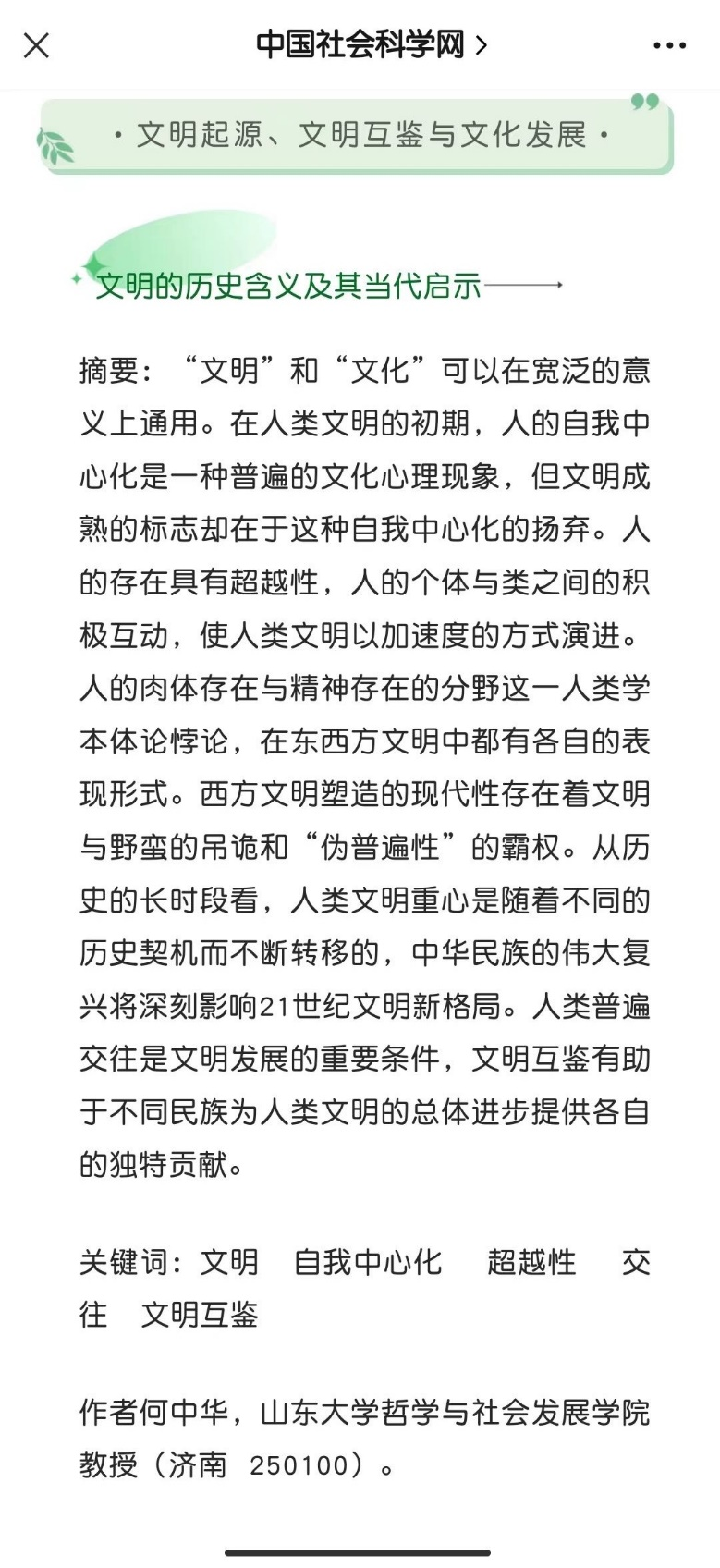 近日,必赢76net何中华教授在《中国社会科学》2023年第6期发表高水平论文《文明的历史含义及其当代启示》。